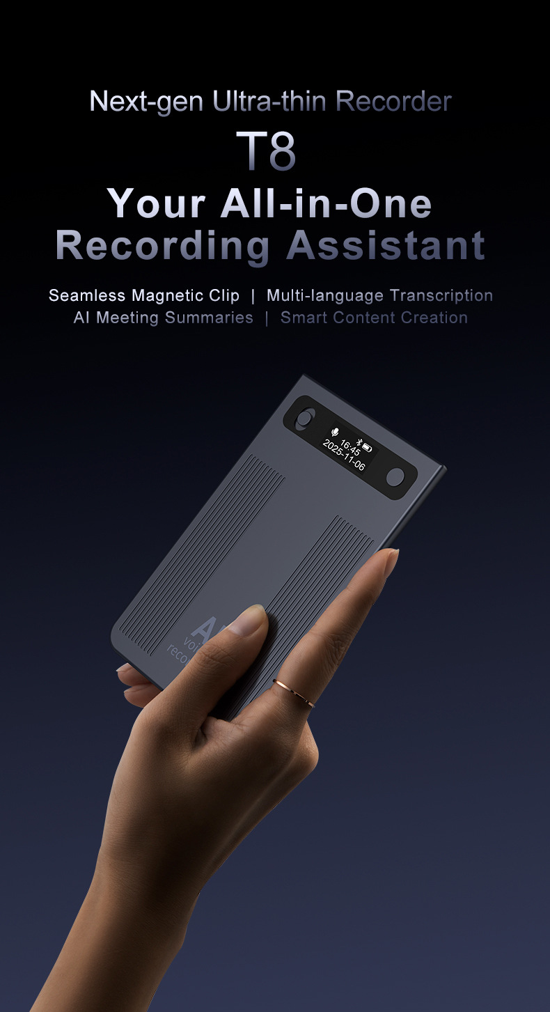 新品T8智能AI录音笔办公会议商务语音转写文字总结超薄录音器...¥185.00