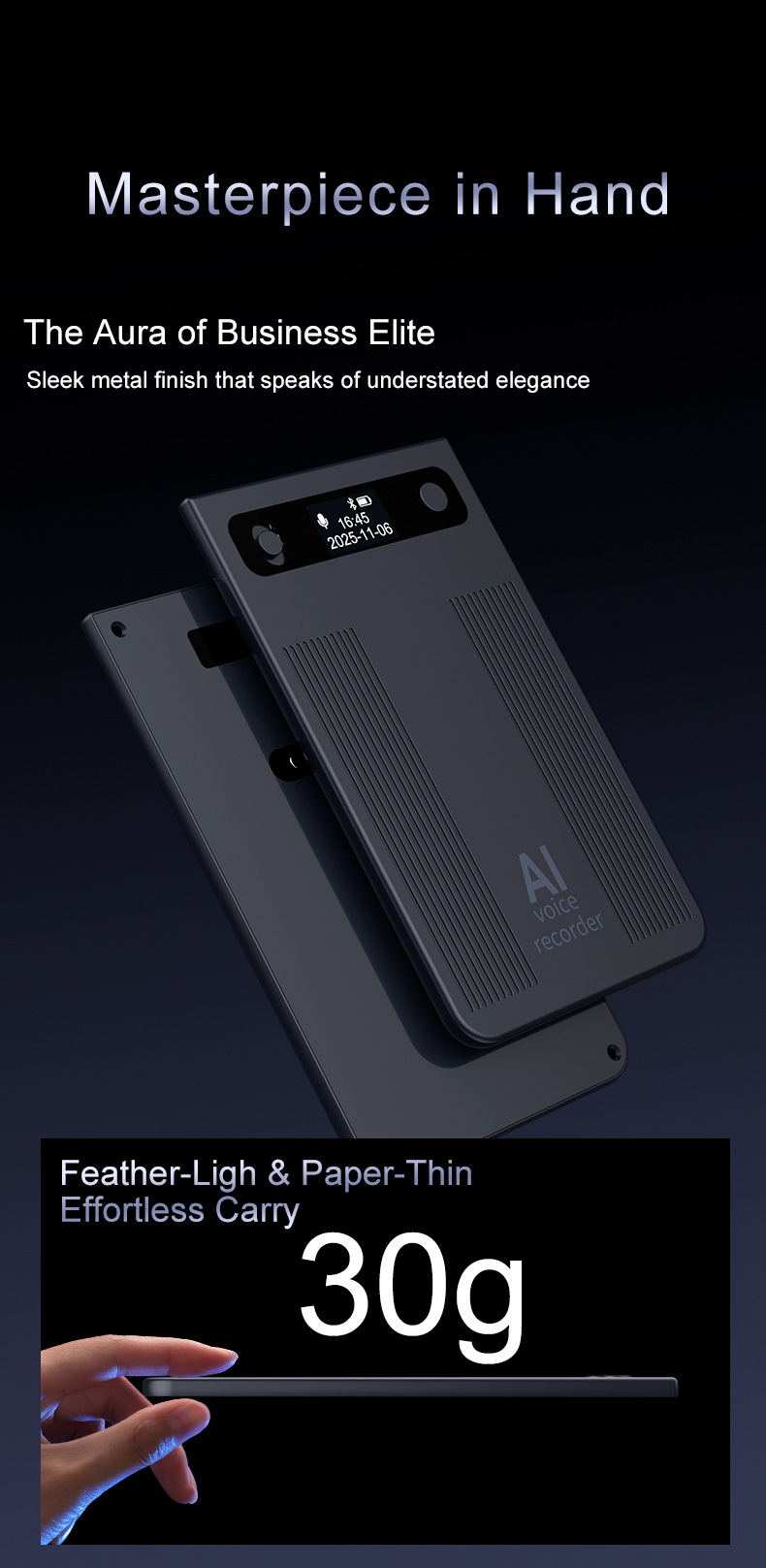 新品T8智能AI录音笔办公会议商务语音转写文字总结超薄录音器...¥185.00